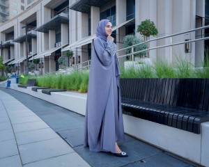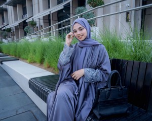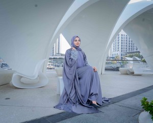 A 3 piece set of ,silk inner and shela Soft silk abaya with handworked organza sleeve patches